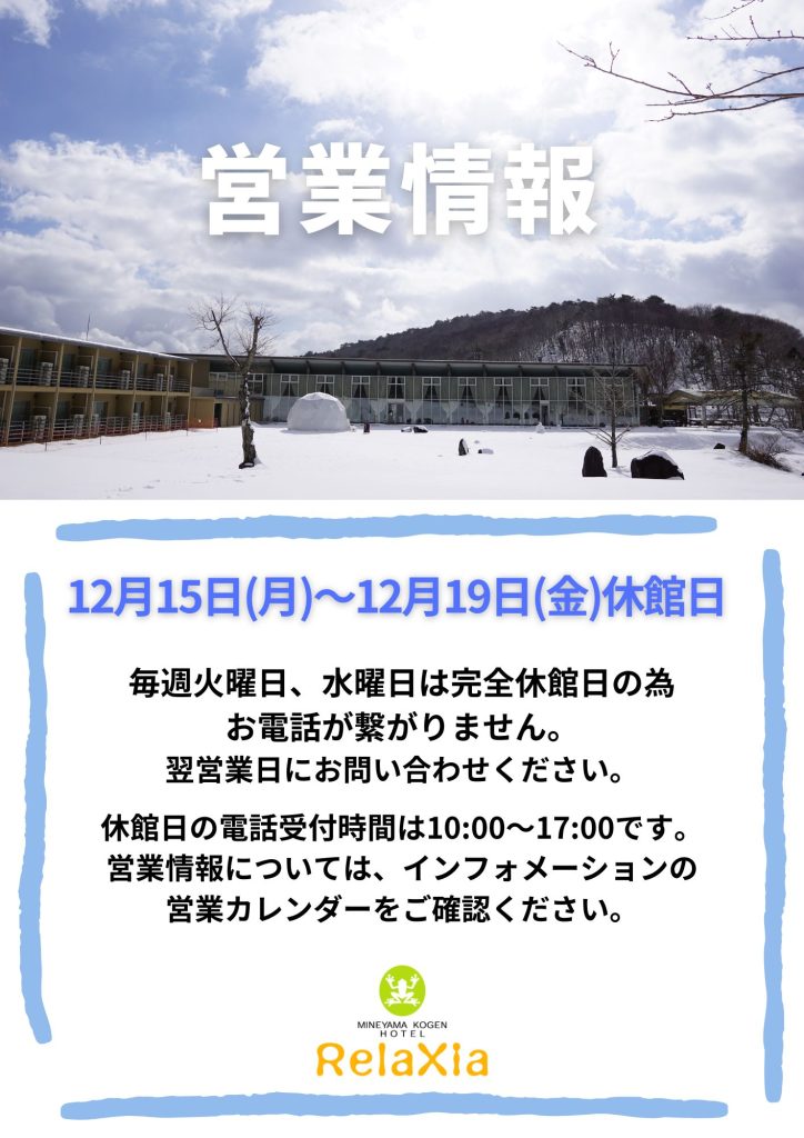 ☆12月15日(月)~12月19日(金) 営業情報☆