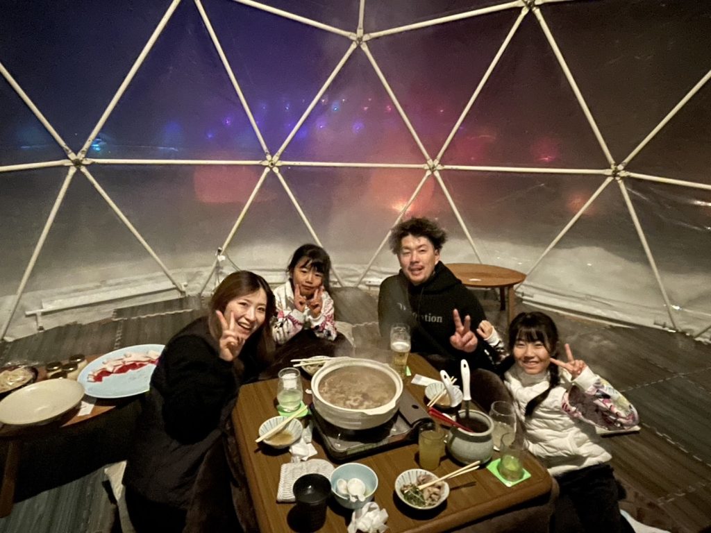 更に、公式サイト限定で、冬になると中庭に登場する透明ドームでこたつに入りながらお鍋を楽しむことができます!