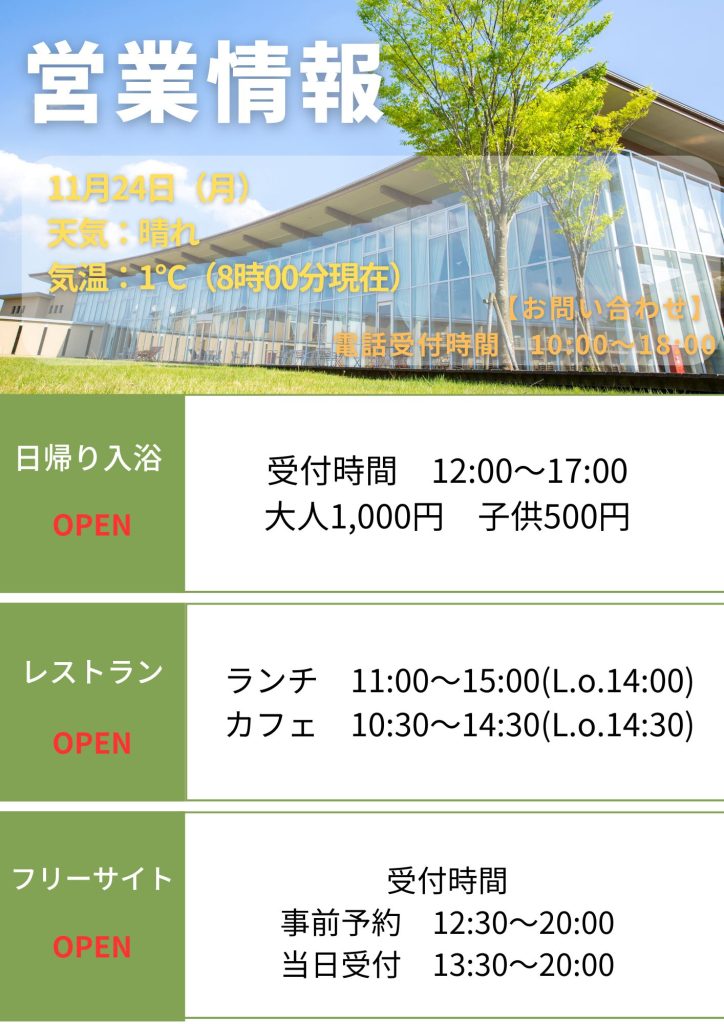 チェックアウト日は、12:00~18:00まで日帰り入浴をご利用いただけます。(※営業時間は日により異なりますので、必ずホームページでご確認ください)タオル無料貸出はなく、有料レンタルとなります。