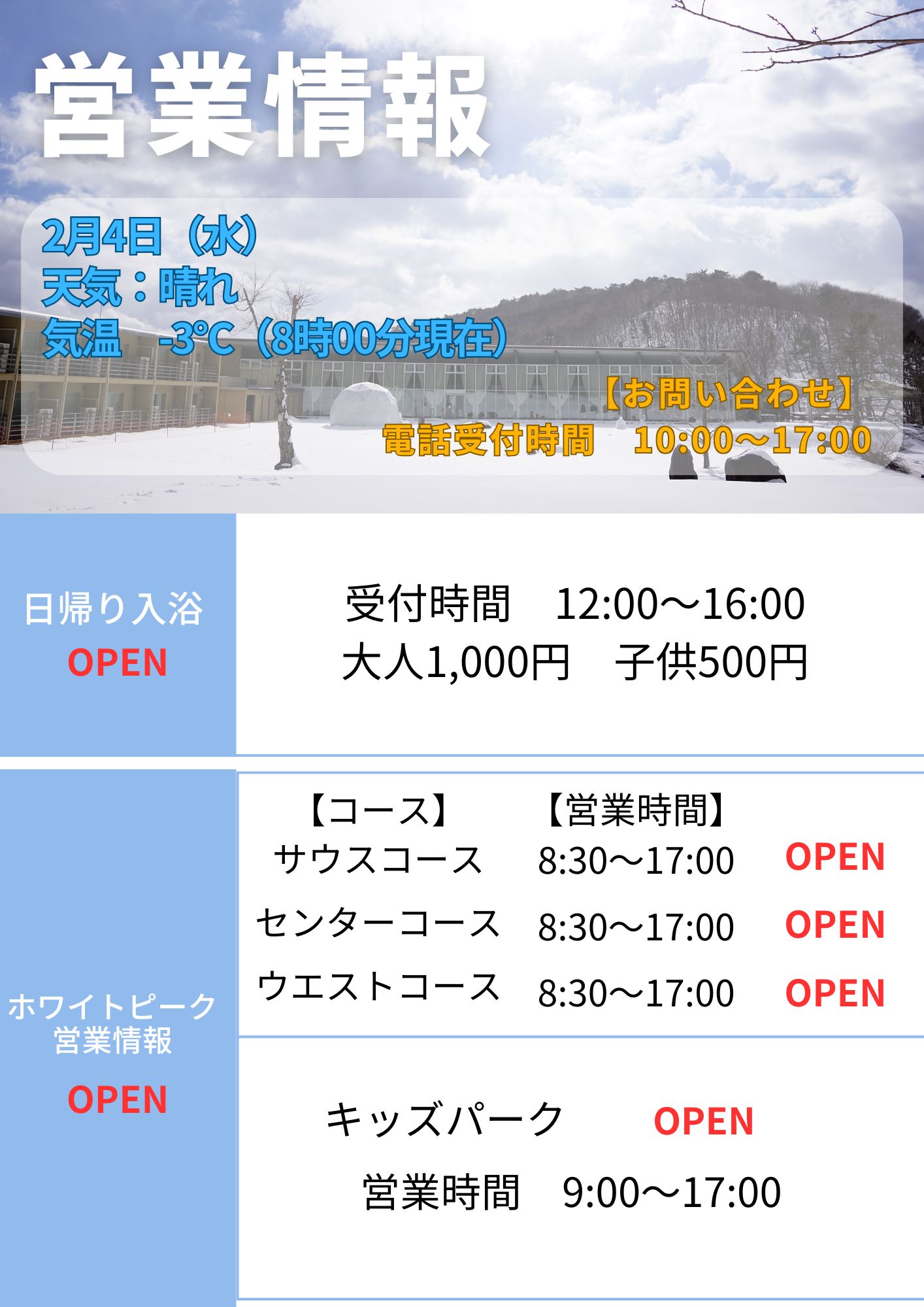 ・利用時間は営業時間や積雪状況、天候によって変動があります。